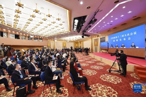 3月3日,全國政協(xié)十三屆五次會(huì)議新聞發(fā)布會(huì)在北京人民大會(huì)堂舉行。為有效防控疫情,本次新聞發(fā)布會(huì)沿用前兩年做法,采用網(wǎng)絡(luò)視頻的形式舉行,主會(huì)場(chǎng)設(shè)在人民大會(huì)堂,分會(huì)場(chǎng)設(shè)在梅地亞中心。這是大會(huì)新聞發(fā)言人郭衛(wèi)民在主會(huì)場(chǎng)介紹大會(huì)有關(guān)情況。 新華社記者 金良快 攝