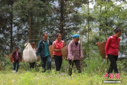 4月12日,張林昌送郵件到深山中遇到村民下山趕集返回。 中新社發(fā) 瞿宏倫 攝