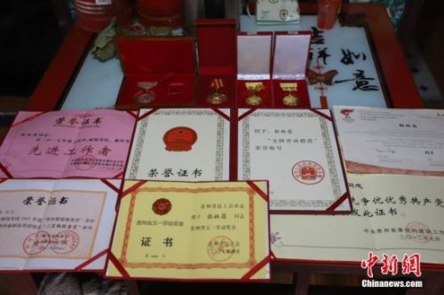 4月12日,張林昌展示所獲榮譽(yù)證書。勤懇的張林昌因工作出色獲獎(jiǎng)無(wú)數(shù),其中2010年獲得的“全國(guó)勞動(dòng)模范”稱號(hào)是他最為驕傲的。張林昌是貴州省錦屏縣郵政局啟蒙支局鄉(xiāng)村郵遞員,他一人在莽莽群山之間送信已堅(jiān)持了31年。31年里,靠著肩挑背扛,他累計(jì)將140多萬(wàn)件報(bào)刊信件送達(dá)深山的村民家中,步行里程已超過(guò)24萬(wàn)多公里。1987年,23歲的張林昌剛從部隊(duì)退伍返鄉(xiāng)就接過(guò)老郵員肩上的郵包干上了鄉(xiāng)村郵遞員工作,負(fù)責(zé)錦屏縣河口鄉(xiāng)片區(qū)的郵路。位于大山深處的郵路全長(zhǎng)90余公里,串聯(lián)著啟蒙鎮(zhèn)到河口鄉(xiāng)一帶2.5萬(wàn)余民眾。這期間,他每年365天除了春節(jié)和偶爾有事請(qǐng)假,幾乎從不缺席。按照規(guī)定,年近55歲的他可申請(qǐng)退休,但他卻堅(jiān)定地說(shuō)“只要我還能走,就會(huì)堅(jiān)持給鄉(xiāng)親們送郵件!” 中新社發(fā) 瞿宏倫 攝