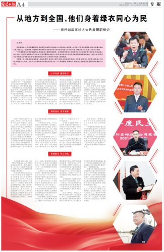 他們是郵政人,傳民情履職盡責(zé),用實際行動詮釋人民郵政為人民的宗旨;他們是人大代表,匯民聲共商國是,把群眾的需求裝在心里、放在心上。截至目前,中國郵政集團有限公司宿遷市分公司已走出各級人大代表10名,涵蓋全國、省、市、縣、鄉(xiāng)鎮(zhèn)五個層面。