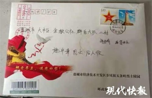 現(xiàn)代快報(bào)記者了解到,多年來(lái),守墓人卞康全執(zhí)著守護(hù)"烈士家園",竭力尋找烈士親人。自2018年開(kāi)始,卞康全根據(jù)整理的地址寄送尋親信。2019年鹽城市郵政分公司在五條嶺開(kāi)展黨建聯(lián)盟活動(dòng)時(shí),了解到守墓人卞康全的情況,感動(dòng)之余決定為他免費(fèi)提供信封、免費(fèi)投遞。