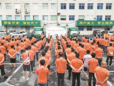 作為獨(dú)家進(jìn)駐校園的快遞企業(yè),時(shí)間緊、任務(wù)重。為做好此次項(xiàng)目活動(dòng),分公司第一時(shí)間召開“校園寄遞項(xiàng)目”啟動(dòng)會(huì)、校園寄遞專題工作會(huì),制定并下發(fā)《校園寄遞項(xiàng)目實(shí)施方案》,成立了7個(gè)工作組、19個(gè)黨員先鋒隊(duì),抽調(diào)了黨員、機(jī)關(guān)干部、部門骨干近150人,統(tǒng)一配發(fā)服裝、工具等,還建立了校園項(xiàng)目微信工作群,實(shí)時(shí)在群內(nèi)進(jìn)行工作調(diào)度。