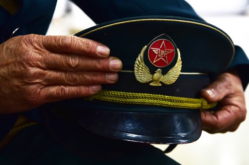 老人撫摸著珍藏多年的這頂大沿帽,滿(mǎn)懷深情向來(lái)訪(fǎng)者講訴他當(dāng)年的故事