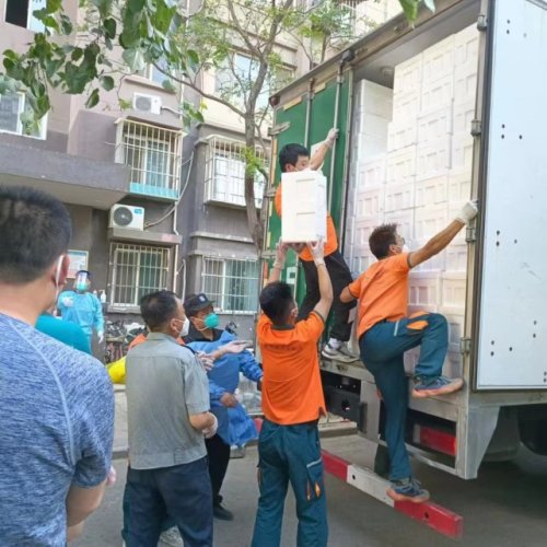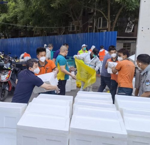 5月29日,3900份蔬菜套餐和6400斤延慶愛(ài)心圓生菜分4車順利送達(dá)封控區(qū)南庭新苑北區(qū)內(nèi)。