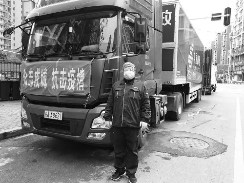 2020年3月,張旻運(yùn)輸抗疫物資到武漢。合肥郵區(qū)中心局供圖。(資料圖片)