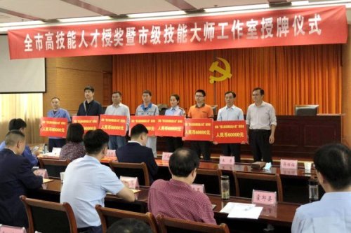 近日,六安市人社局舉行全市高技能人才授獎暨市級技能大師工作室授牌儀式。盧海龍因獲得“第五屆安徽省技能大獎”榮譽(yù)稱號,上臺接受表彰。在獲得省人社廳5萬元獎勵的基礎(chǔ)上,市人社局再獎勵6萬元,累計(jì)獲得獎勵11萬元。