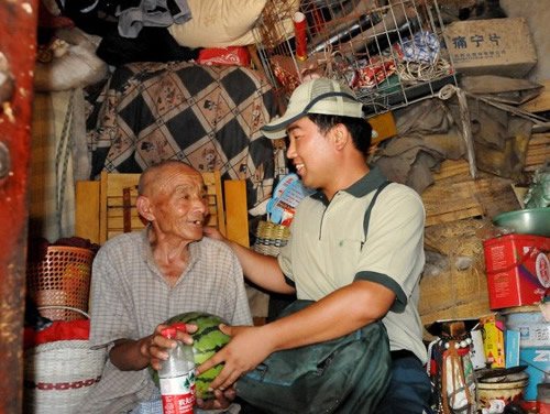炎熱夏日,張軍看望孤寡老人。