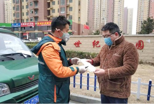 2月5日是亳州市首個(gè)開放限購口罩的日子,當(dāng)天市分公司收到訂單后,第一時(shí)間配送口罩。下午15時(shí),家住世紀(jì)花園的張奎從郵政快遞員丁偉杰手上接過口罩,成為亳州市第一位收到政府限購口罩的市民。