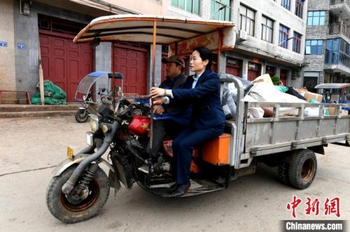 圖為蔣玉美乘坐小三輪回郵政所。 王東明 攝