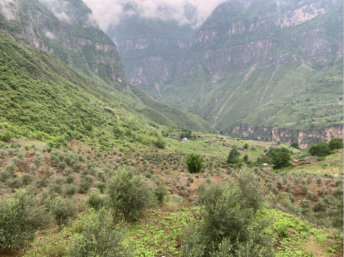 云霧縈繞的山頂上,大片油橄欖林和少許莊稼、蔬菜長(zhǎng)勢(shì)正好,其間錯(cuò)落有致地分布著一間間彝族老百姓村舍,竹墻青瓦,簡(jiǎn)樸寧?kù)o。在最高處,一面鮮艷的黨旗迎風(fēng)飄揚(yáng),旁邊有一家簡(jiǎn)易民宿,可供當(dāng)天實(shí)在不能下山的游客小住。遠(yuǎn)遠(yuǎn)看去,有村民已在院外翹首以盼,等待某色爾者到來(lái)。