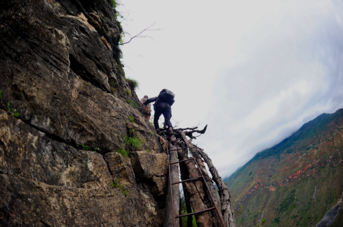 天空飄著細(xì)雨,讓本就艱難的攀爬變得更加艱險(xiǎn)起來(lái)。