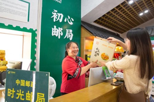 石柱縣分公司文化傳媒中心負(fù)責(zé)人向志華介紹,初心郵局在布置方面融入了黨建、石柱、本土文化、農(nóng)特產(chǎn)品等眾多元素,兩層樓構(gòu)造,一層展示當(dāng)?shù)氐霓r(nóng)特產(chǎn)品,比如中益土蜂蜜、鹽竹筍、紅辣椒等;二層通過紀(jì)念郵票區(qū)、家書初心區(qū)、文創(chuàng)產(chǎn)品區(qū),提供特色郵政服務(wù)?!爸黝}郵局取名初心郵局,一方面是契合當(dāng)?shù)爻跣男≡?、初心廣場的主題,另一方面也是展示‘人民郵政為人民’的初心?!?/p>