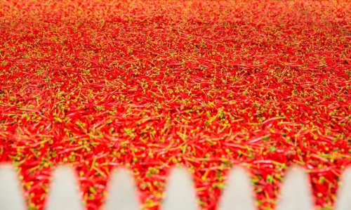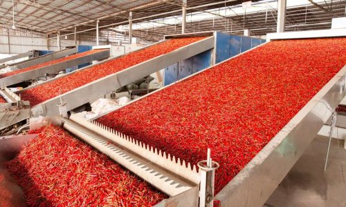 循著這股辣味,重慶采訪組來到重慶譚妹子金彰土家香菜加工有限公司。一進門就聞到了空氣中彌漫著的辣椒香味,廠房里的烘干機正開足馬力運轉(zhuǎn),庫房里加工好的干辣椒正等待著郵車的到來。