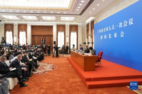 3月4日,十四屆全國人大一次會議在北京人民大會堂舉行新聞發(fā)布會。大會發(fā)言人王超就會議議程和人大有關工作回答中外記者提問。新華社記者 邢廣利 攝