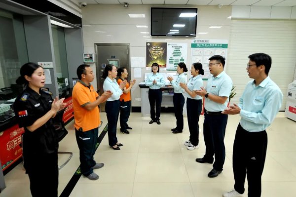 走進(jìn)蘭里支局,寬敞明亮、簡(jiǎn)潔大氣,廳內(nèi)設(shè)立了客戶等候區(qū)、VIP服務(wù)區(qū)、郵政業(yè)務(wù)區(qū)等多個(gè)功能分區(qū)?!案魑粌?yōu)秀的伙伴,大家早上好!”“好、很好、非常好、越來(lái)越好!”早上七點(diǎn)四十分,隨著晨會(huì)的開始,蘭里支局一天的工作便拉開了帷幕。