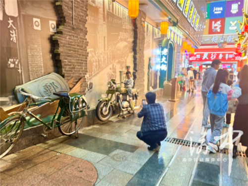 成都游客陸鳴就選擇在10月5日的下午來到這里,用感受人文氣息的方式結(jié)束“重慶游”。“雖然來過渝中多次,但重慶督郵街還是第一次來。這次也是看到有博主介紹,慕名而來?!彼阒⒆右宦放恼?,從督郵街口的郵政文物——“老牌”郵筒拍到不同時(shí)期的送信交通工具,此時(shí)的他變身一位“郵遞員”,或陪著孩子坐在扁擔(dān)上、抱著孩子坐在自行車上自拍,或讓孩子獨(dú)自坐在摩托車上為他拍,一路了解重慶郵政業(yè)的發(fā)展,也從重慶郵政業(yè)的發(fā)展中感受著這座城市的發(fā)展?!斑@條街很有意思,既有市井氣,又有知識(shí)學(xué),讓我們看到了蘊(yùn)含在重慶小巷里的人文歷史?!?/p>