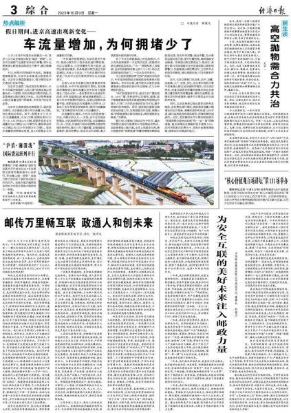 郵政業(yè)是國民經(jīng)濟的基礎(chǔ)性、戰(zhàn)略性、先導(dǎo)性產(chǎn)業(yè),在助力公共服務(wù)均等化、推動流通方式轉(zhuǎn)型、促進消費升級等方面都發(fā)揮著重要作用。今年以來,我們堅定貫徹習(xí)近平新時代中國特色社會主義思想和黨的二十大精神,扎實開展主題教育,著力推動高質(zhì)量發(fā)展,持續(xù)打造核心競爭優(yōu)勢,加快推進戰(zhàn)略任務(wù)落地,取得了顯著成效,在《財富》世界500強中位列第86位,連續(xù)4年躋身百強行列。