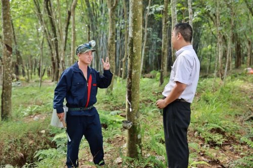 劉麗海在聊天中得知村民黎紅光有貸款的意向后,馬上將這條信息反饋給蘭洋鎮(zhèn)郵政支局局長劉輝。第二天一早,劉輝就趕往黎紅光家的橡膠林。