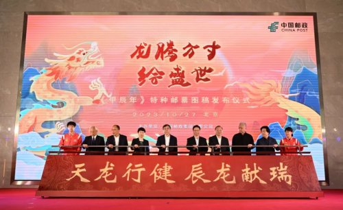 10月27日,中國(guó)郵政《甲辰年》特種郵票圖稿發(fā)布儀式在京舉行。國(guó)家郵政局副局長(zhǎng)、中華全國(guó)集郵聯(lián)合會(huì)會(huì)長(zhǎng)戴應(yīng)軍,中央港澳工作辦公室巡視員許麗,中國(guó)郵政集團(tuán)有限公司黨組書記、董事長(zhǎng)劉愛(ài)力,黨組副書記、總經(jīng)理鄭國(guó)雨,黨組成員、副總經(jīng)理康寧,觀復(fù)博物館創(chuàng)辦人、著名文化學(xué)者馬未都,中國(guó)社科院榮譽(yù)學(xué)部委員、民俗學(xué)會(huì)名譽(yù)會(huì)長(zhǎng)劉魁立,中國(guó)國(guó)家乒乓球隊(duì)運(yùn)動(dòng)員林高遠(yuǎn)、于子洋、陳幸同、錢天一等出席活動(dòng)。發(fā)布儀式上公布了《甲辰年》特種郵票圖稿并同步啟動(dòng)郵票印制。