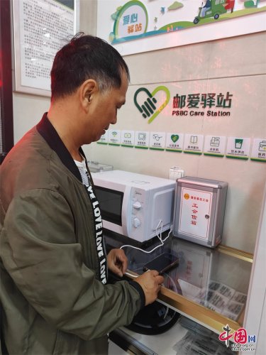 本著最大范圍服務(wù)戶外勞動者工作的原則,郵儲銀行南充市分行選擇網(wǎng)點面積較大,地處戶外勞動者密集區(qū)域、毗鄰居民居住區(qū)、臨街的網(wǎng)點優(yōu)先建設(shè)郵愛驛站。網(wǎng)點設(shè)立服務(wù)專區(qū),配備休息桌椅、飲水機、微波爐、充電器、雨傘、醫(yī)藥箱、輪椅等便民設(shè)施,為戶外工作者、特殊客戶群體及其它緊急訴求的社會公眾提供服務(wù)資源。網(wǎng)點在醒目位置張貼服務(wù)站點標識,讓戶外勞動者“知道來、經(jīng)常來”。三年來,郵愛驛站已累計為戶外勞動者約5萬余人提供服務(wù)。
