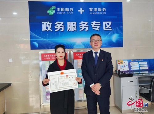 11月28日,雙流區(qū)行政審批局與中國郵政集團有限公司成都市雙流區(qū)分公司戰(zhàn)略合作協(xié)議簽訂儀式舉行。儀式上,雙方合作設(shè)立的首個“政務(wù)服務(wù)專區(qū)”窗口在長順路網(wǎng)點正式開始運行,并辦出第一份企業(yè)營業(yè)執(zhí)照。