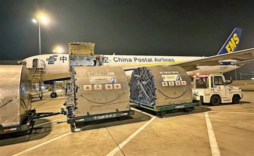 12月25日6點(diǎn)37分,首架滿載22噸抗震救災(zāi)物資的中國郵政航空飛機(jī)(CF9002航班)從南京祿口國際機(jī)場起飛,9點(diǎn)02分飛抵蘭州中川國際機(jī)場,標(biāo)志著中國郵政“南京—蘭州”抗震救災(zāi)航空運(yùn)輸專線從即日起正式開通。隨后,裝載著18噸抗震救災(zāi)物資的第二架郵航飛機(jī)(CF9112航班)于11點(diǎn)18分飛抵蘭州。兩個航班運(yùn)送的總重40余噸救災(zāi)物資包括帳篷、衣物、被褥、雨鞋、方便食品等,緊急馳援甘肅省臨夏州積石山縣抗震救災(zāi)工作。