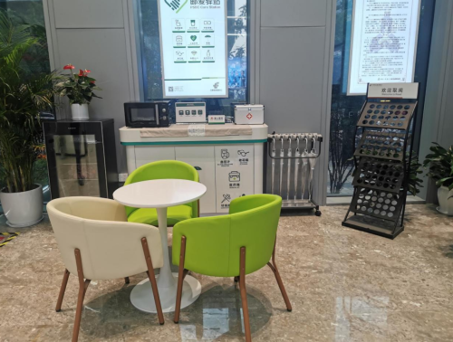 在觀音橋有一處溫暖之所,累了可以歇腳,渴了可以飲水,冬可取暖,夏可納涼,閑暇可讀書、閱報。這個“郵愛驛站”因為臨街設立,位置較為顯眼,不時會有外賣工作人員或者附近道路的車輛管理人員等抽空過來小憩,喝兩口熱水暖暖身子暖暖手,或者給手機充會兒電。驛站里放置著熱水、礦泉水、醫(yī)藥箱、消毒液等用品,供勞動者隨用隨取,小小的設施,卻大大地提高了這些勞動者的工作效率和生活質量,也著實提高了他們的幸福感、獲得感。