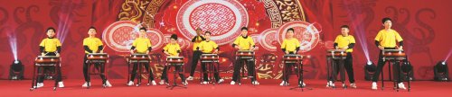 來(lái)自宋慶齡基金會(huì)的孩子們?yōu)槭装l(fā)式擂鼓助威。