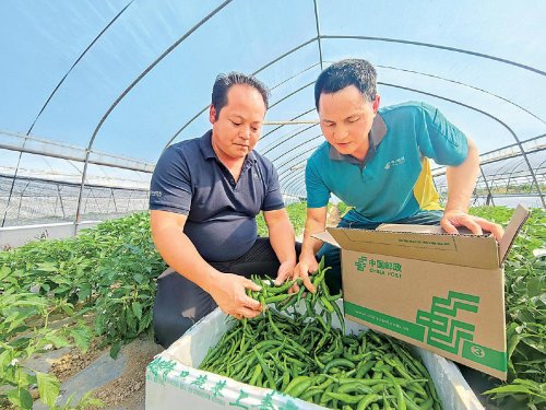為了讓育青合作社的辣椒更有品質(zhì),湘陰縣分公司協(xié)同郵儲銀行湘陰縣支行為馬育青提供貸款20萬元,用于改善大棚種植條件;在馬育青的合作社有了一定規(guī)模后,為了提升合作社的抗風(fēng)險能力、助其實(shí)現(xiàn)可持續(xù)發(fā)展,湘陰縣分公司又逐步引導(dǎo)馬育青將銷售方式從線下批發(fā)轉(zhuǎn)型到線上電商銷售,并借助郵樂平臺幫其打通了電商銷售渠道;在寄遞支撐上,每到銷售旺季,湘陰縣分公司都會組織人員來到育青合作社和工人們一起采摘辣椒、打包裝車。從資金、銷售到寄遞,郵政為馬育青提供了“一站式”的服務(wù)。