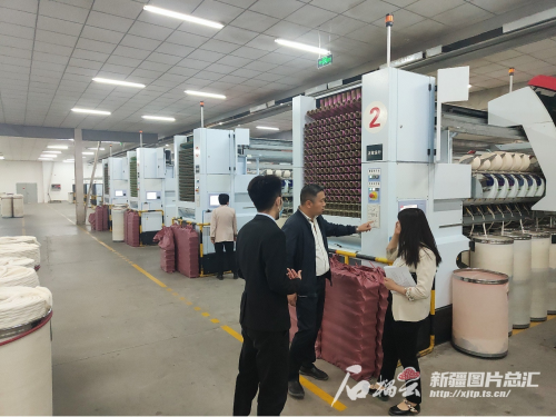 1月19日,郵儲銀行吐魯番市分行客戶經(jīng)理在吐魯番常新紡織有限公司了解企業(yè)生產(chǎn)經(jīng)營情況。通訊員周敏 攝
