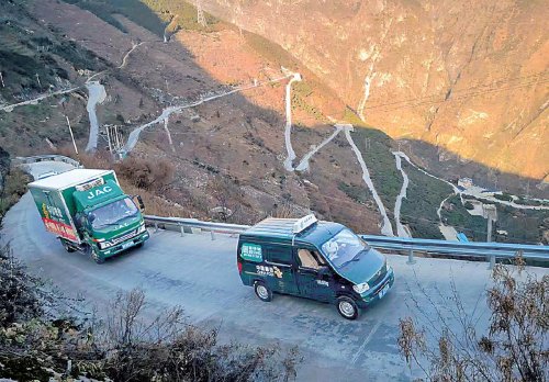 每年9月至次年1月,每天都有幾輛郵車在這條崎嶇的郵路上奔波,它們的任務(wù)是前往達(dá)杠村,幫助村民將蘋果運(yùn)出大山、運(yùn)往全國各地。