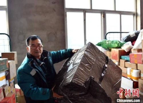 1月25日,楊小合正在搬運(yùn)將要投遞的郵件。韓冰 攝