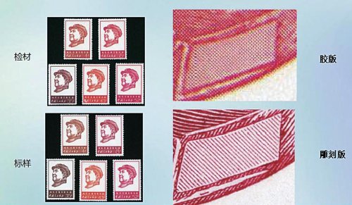 印刷版別是郵票真?zhèn)舞b別最本質(zhì)最重要的鑒別特征,所以要識(shí)別假郵票就需要掌握不同版別的印刷特點(diǎn)。而且,郵票印刷廠的印制設(shè)備也是仿印假票的小作坊所無法比擬的,仿印的假票無法達(dá)到與真郵票在印刷制版上完全相同,通過印刷版別的比對可以辨別檢材的真?zhèn)巍?/p>