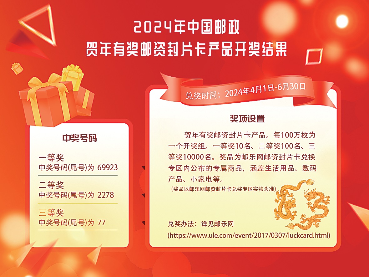 2024年中國郵政賀年有獎郵資封片卡產(chǎn)品開獎結(jié)果