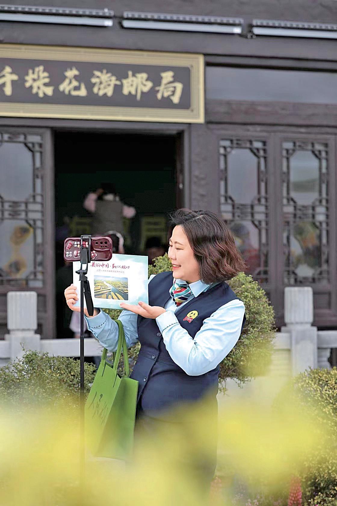 千垛花海郵局通過直播展示景區(qū)風(fēng)光和傳播郵政文化。