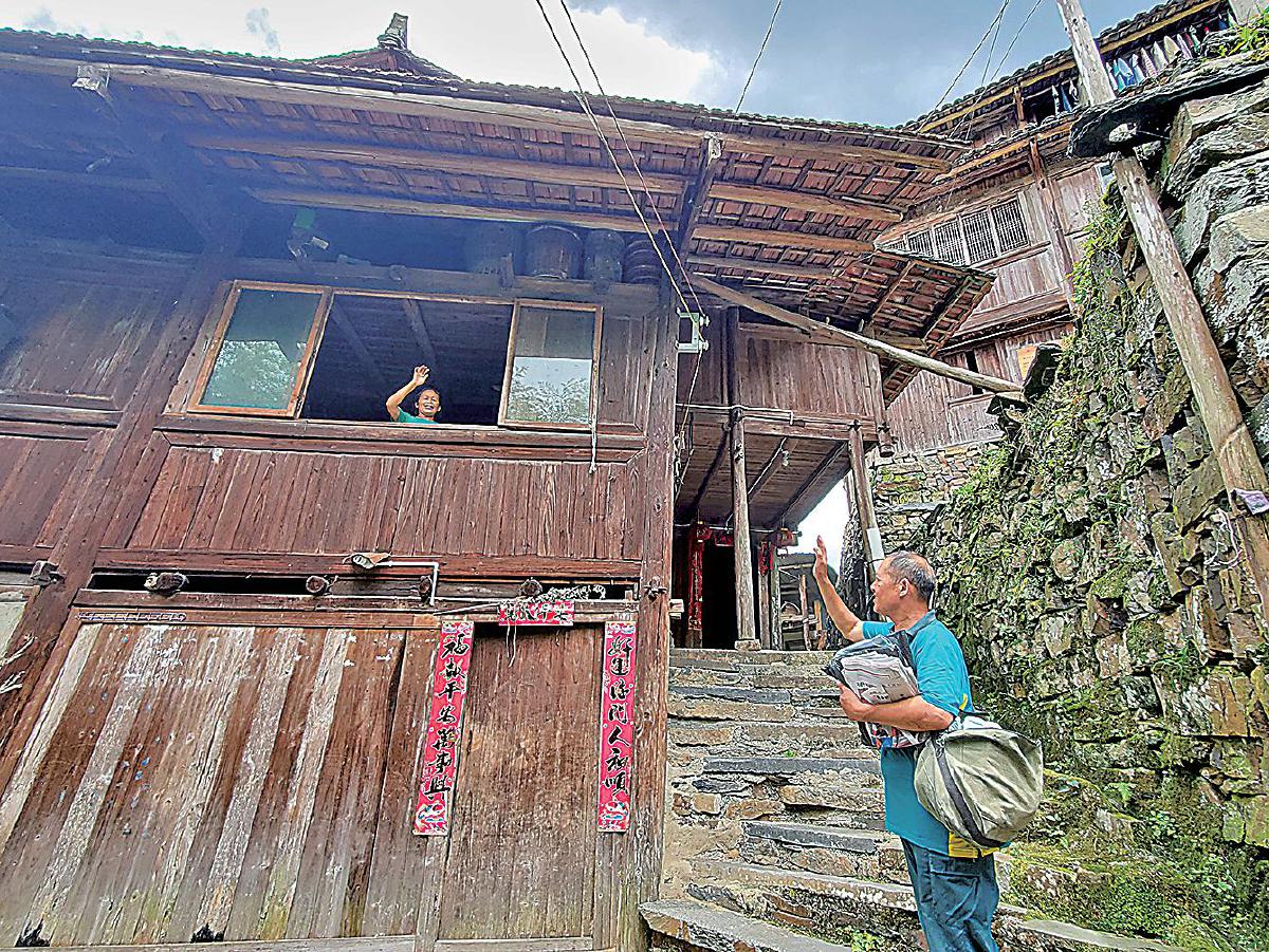 多年投遞讓張林昌和鄉(xiāng)親們成了親人,行之所至,總有老鄉(xiāng)與他熱情打招呼?! 蹴n靜樺 攝