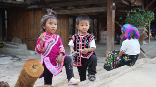一進(jìn)村,記者就看到一排排整齊的桿欄式建筑,極具民族風(fēng)情。拉祜族村民身穿黑色打底、點(diǎn)綴彩線和色布的民族服飾,在自家院子里悠閑地喝著茶,小朋友們?cè)诎⒉缄憦V場(chǎng)上追逐玩耍。在廣場(chǎng)旁邊葫蘆型的感恩池畔,有一個(gè)石榴形狀標(biāo)志牌,寓意各民族像石榴籽一樣緊緊抱在一起,牌子上“不忘初心跟黨走 牢記使命興邊疆”的紅色大字格外耀眼。
