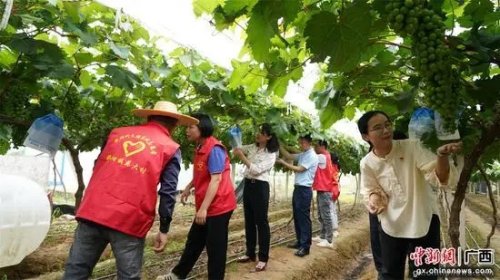 日前,那陽鎮(zhèn)人民政府、中國郵政橫州市分公司、中國人保財險橫州支公司在那陽鎮(zhèn)莫渡村聯(lián)合舉行“助農(nóng)惠農(nóng) 助力鄉(xiāng)村振興”葡萄基地揭牌儀式,為村中葡萄種植戶發(fā)放套袋,并提供存貸款業(yè)務(wù)咨詢、辦卡、農(nóng)資銷售等方面的服務(wù)。