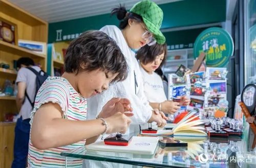 6月18日,游客在呼和浩特市玉泉區(qū)塞上老街旅游休閑街區(qū)“塞上主題郵局”內(nèi)集章打卡,珍藏“獨家記憶”。