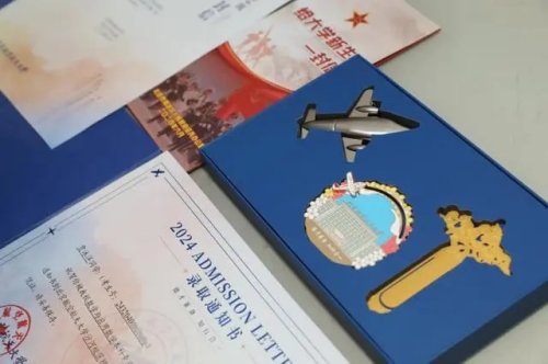 啟封北航2024年本科生錄取通知書,首先映入眼簾的是封套的北航藍,封面上燙金的背影則代表著所有北航新生即將開啟人生的金色新篇,實現(xiàn)手可摘星辰的夢想。翻開內(nèi)封,校訓“德才兼?zhèn)?,知行合一”是送給新北航人的第一句囑托。