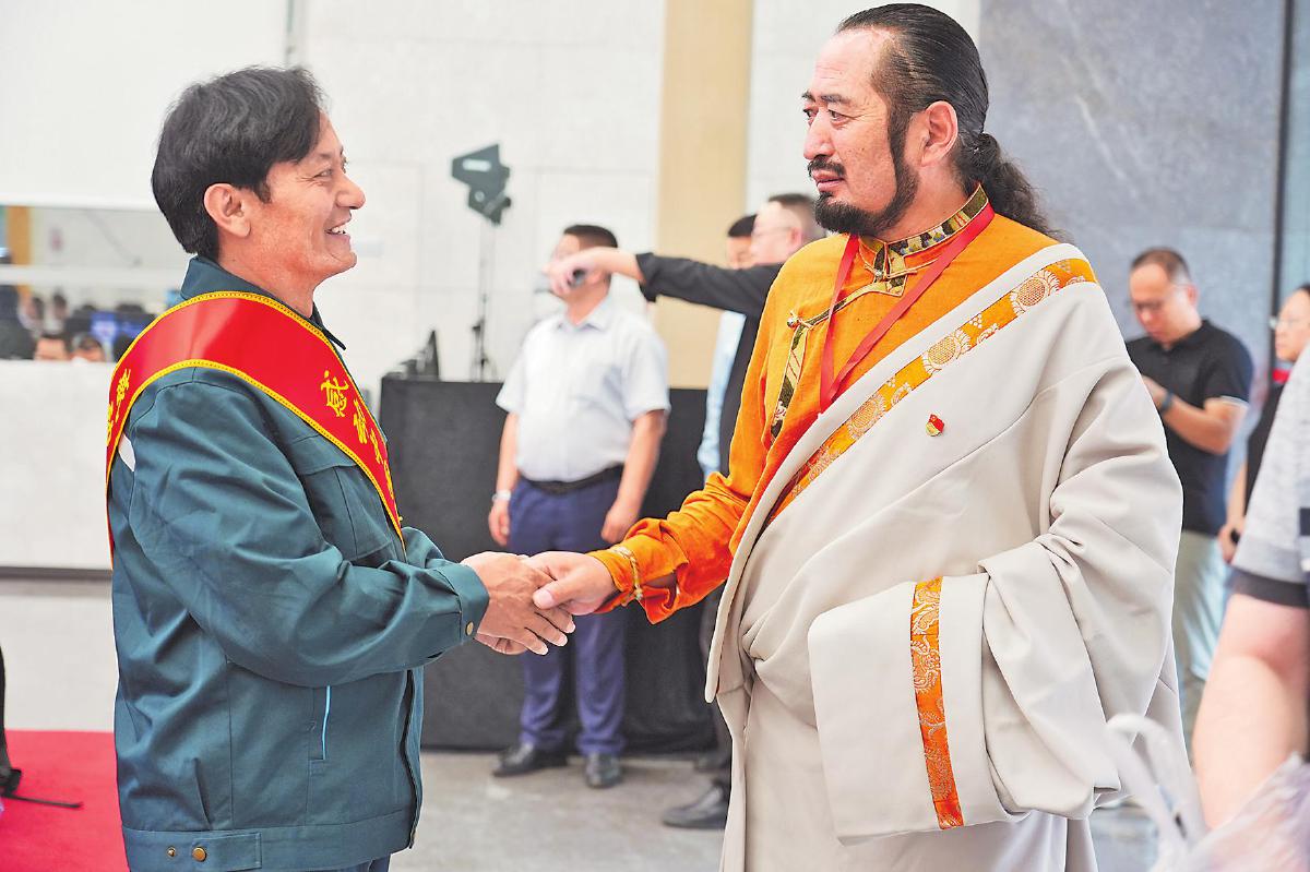 其美多吉(右)與桑布(左)親切交談。□孫偉光 攝
