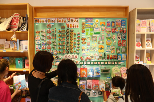 在俄式風情拉滿的套娃主題郵局,采訪組一行看到了套娃形狀的郵筒、手繪套娃、套娃明信片、郵折、筆記本、冰箱貼等產(chǎn)品,這些產(chǎn)品吸引了很多小朋友的眼球。來自山東的中學生張同學對一款做工精美的套娃愛不釋手:“感覺來到這里就像到了俄羅斯,這里的套娃都太精美了,每一款都想要!”