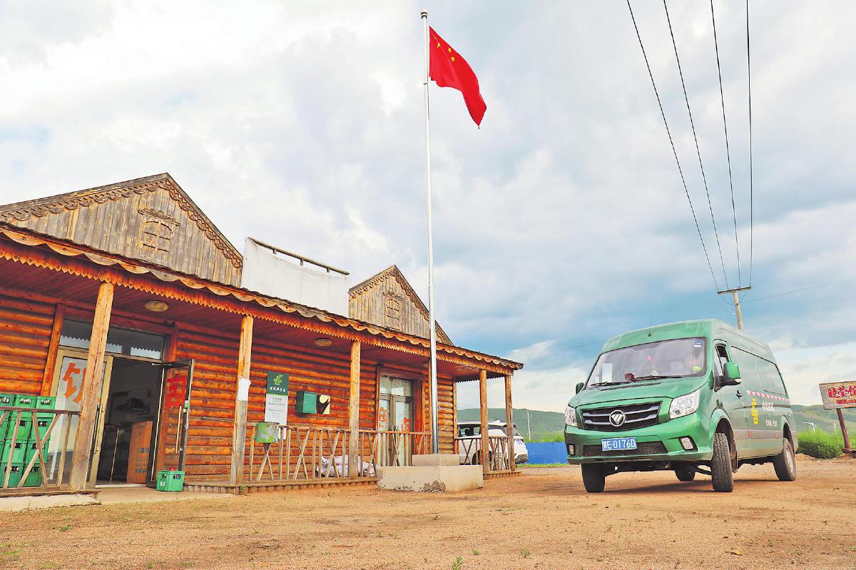 沿著額爾古納河一路前行,每隔一段距離就能看到醒目的標(biāo)識牌——“請勿越界”。當(dāng)一面鮮艷的國旗映入眼簾時,采訪組來到了此行的目的地——八卡村。八卡村地廣人稀、位置偏遠(yuǎn)、交通不便,在邊境村通郵前,村民只能自行到100多公里外的額爾古納市取郵件,或由村民相互捎帶再到周邊鄉(xiāng)鎮(zhèn)去領(lǐng)取,費時費力,極不方便。如今,呼倫貝爾市郵政分公司在村口的曉瑩便利超市疊加了便民服務(wù)站點。看見郵車抵達(dá),老板吳華北高興地跑出來接郵件。他笑著說:“現(xiàn)在村民來店里買東西時,就能順便取走包裹。郵政服務(wù)為老百姓帶來了很大的方便!”