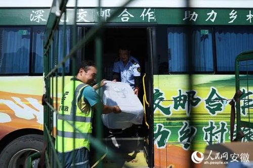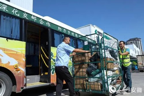 每天上午9時許,位于譙城區(qū)的中國郵政亳州郵件處理中心內(nèi),不少公交車會陸續(xù)開進來。這些車身有著“交郵融合”字樣的公交車,就是郵政快遞下鄉(xiāng)的新“郵車”。
