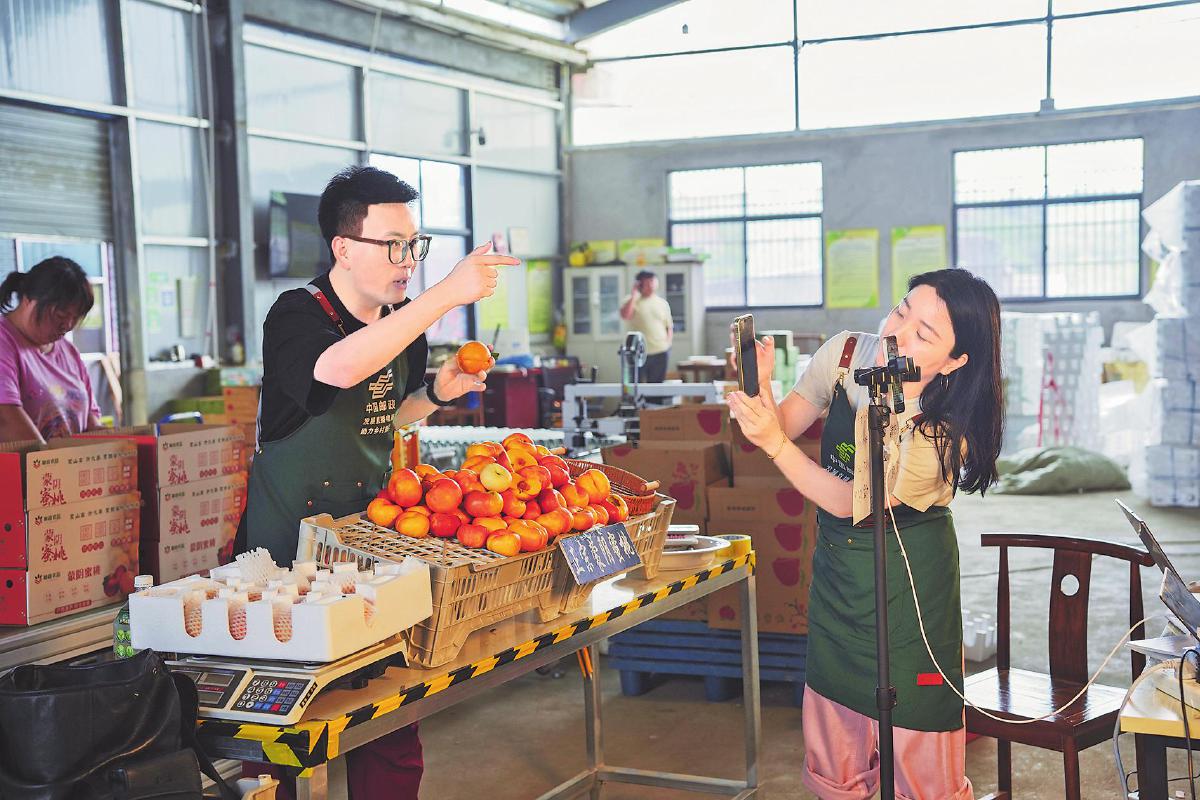 山東蒙陰被譽(yù)為“中國(guó)蜜桃之都”,其位于北緯35度的黃金水果帶,孕育出了享譽(yù)全國(guó)的蒙陰蜜桃。借助今年“919”郵政農(nóng)品節(jié),臨沂市郵政分公司充分發(fā)揮協(xié)同優(yōu)勢(shì),將產(chǎn)自紅色沂蒙山的蒙陰蜜桃作為助力鄉(xiāng)村振興的重點(diǎn)項(xiàng)目來推動(dòng),通過助農(nóng)直播、專項(xiàng)營(yíng)銷,讓蒙陰蜜桃走出山村、走向全國(guó)?!敖裉旖o大家推薦的是蒙陰黃金蟠桃,現(xiàn)摘現(xiàn)發(fā),主打一個(gè)新鮮……”在臨沂市分公司的網(wǎng)絡(luò)直播間,主播賣力吆喝,網(wǎng)友下單不斷。借助電商直播的熱潮,臨沂市分公司積極發(fā)展直播電商,布局線上渠道和直播帶貨資源。7月初正值蟠桃上市的季節(jié),也是蒙陰蜜桃最為熱銷的季節(jié)。臨沂市分公司抽調(diào)郵政業(yè)務(wù)部、寄遞事業(yè)部、直播團(tuán)隊(duì)的人員組成溯源直播小組,對(duì)接合作社、種植戶,開展選品組品工作,做好產(chǎn)品上架、宣傳;同時(shí),與市文旅局聯(lián)合開展直播推廣活動(dòng),宣傳視頻播放量超200萬(wàn)次。經(jīng)過預(yù)熱造勢(shì),直播當(dāng)天,短短1小時(shí)就銷售蜜桃4000余單。今年以來,臨沂郵政直播團(tuán)隊(duì)累計(jì)銷售蒙陰蜜桃10萬(wàn)單,銷售額達(dá)260萬(wàn)元。“919”郵政農(nóng)品節(jié)期間,臨沂市分公司選擇“金皇后”黃桃為主打產(chǎn)品,搭配秋月梨,創(chuàng)新推出“桃梨滿天下”禮盒,圍繞教師節(jié)、中秋節(jié)開展線上推廣與銷售活動(dòng)。清晨6點(diǎn),在蒙陰蜜桃郵政倉(cāng)儲(chǔ)配送中心,桃農(nóng)已經(jīng)開始了一天的勞作。他們將采摘的桃子進(jìn)行摘袋、挑選,郵政工作人員則忙著裝箱、打包、發(fā)貨?!芭c郵政合作后,我們的桃子都是根據(jù)訂單現(xiàn)采現(xiàn)裝。郵政當(dāng)天就會(huì)把桃子運(yùn)走,無(wú)須存放,這可省去了我們很多麻煩!”蒙陰云蒙莊怡生態(tài)農(nóng)業(yè)專業(yè)合作社負(fù)責(zé)人侯克生高興地說。