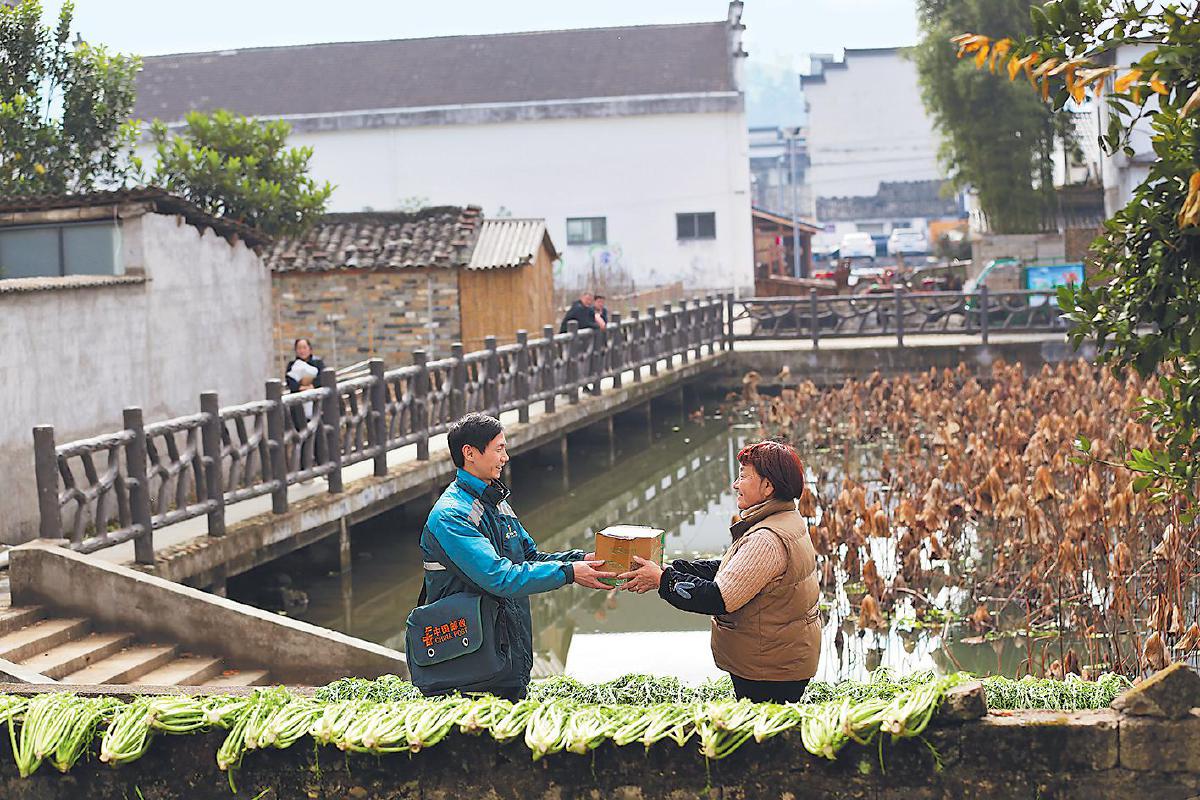 新時代,中國郵政在普遍服務(wù)上突出“政”字要求,堅持提質(zhì)增效,持續(xù)豐富服務(wù)新內(nèi)涵、新供給,將普遍服務(wù)融入鄉(xiāng)村振興、共同富裕等國家戰(zhàn)略,在服務(wù)國家發(fā)展大局中貢獻郵政力量。目前,中國郵政擁有遍布城鄉(xiāng)的5.4萬個網(wǎng)點、40多萬個便民服務(wù)站,鄉(xiāng)鎮(zhèn)網(wǎng)點覆蓋率和建制村通郵率均保持100%,全國3461個邊境村全部直接通郵,成為“鄉(xiāng)鄉(xiāng)設(shè)所、村村通郵”的唯一央企。通過加快三級物流體系建設(shè),中國郵政建成1188個縣級共配中心、6460個鄉(xiāng)鎮(zhèn)共配中心、43萬個村級綜合便民服務(wù)站,郵快合作建制村覆蓋率為77%,與205個城鄉(xiāng)交通一體化重點示范縣合作,開通交郵聯(lián)運線路4546條,農(nóng)村投遞周五班及以上頻次占比為69%,農(nóng)村投遞汽車化率顯著提升,進一步暢通農(nóng)產(chǎn)品出村進城、消費品下鄉(xiāng)進村雙向流通渠道。今年上半年,中國郵政快遞進村業(yè)務(wù)量達26億件、同比增長46%,網(wǎng)絡(luò)銷售農(nóng)產(chǎn)品96.3億元、同比增長33.6%,實現(xiàn)“小包裹服務(wù)大民生”,促進“小農(nóng)品對接大市場”,推動“小產(chǎn)業(yè)融入大循環(huán)”。