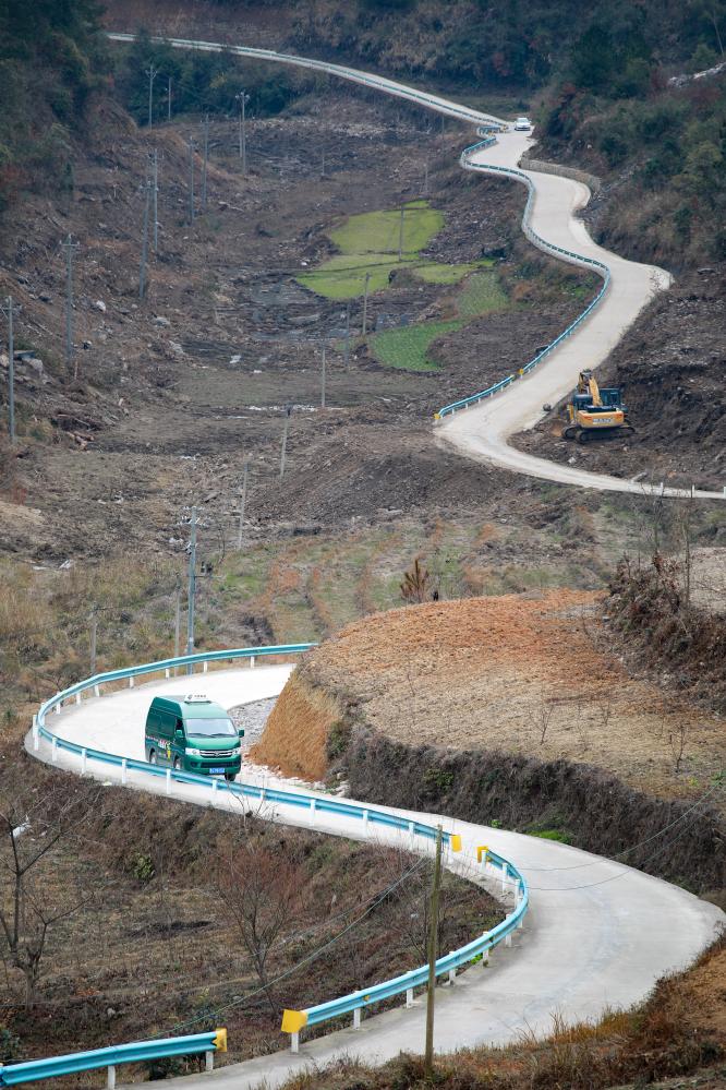 中國郵政貴州省龍里縣分公司的一輛小貨車在通往龍里縣平西村的山間道路上行駛(2023年2月14日攝)。新華社記者 劉續(xù) 攝