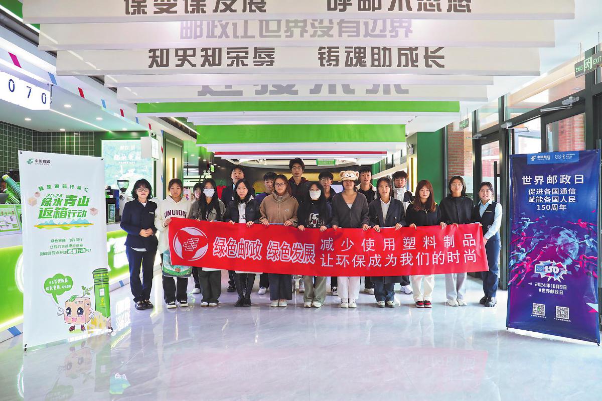 內蒙古自治區(qū)郵政分公司會同呼和浩特市郵政分公司,以全區(qū)首家校園主題郵局——思成建院主題郵局為陣地,組織開展了世界郵政日主題宣傳活動?!熬G色郵政為美好生活加速”環(huán)保活動、財富投教宣講、助農直播等豐富多彩的活動吸引了廣大師生的關注和參與?! 跬鯃A圓 攝