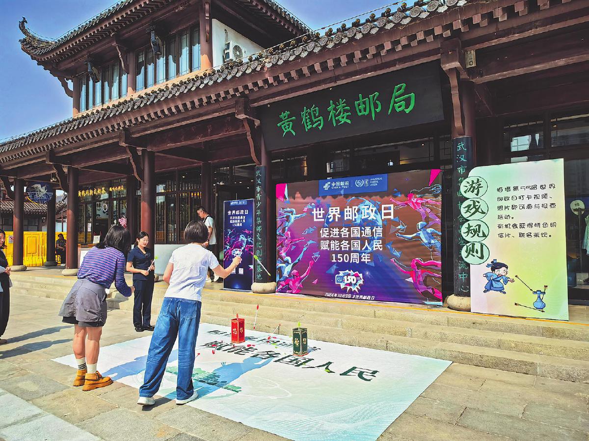 湖北省武漢市郵政分公司在黃鶴樓郵局、東湖高新政務中心以及全市各個郵政網(wǎng)點舉辦了形式多樣的世界郵政日主題宣傳活動。位于黃鶴樓景區(qū)東門的黃鶴樓郵局在世界郵政日當天開展了集戳打卡、趣味投壺、書畫展示等豐富多彩的活動,吸引了不少市民和游客參與。 □肖芳 陳娟 攝