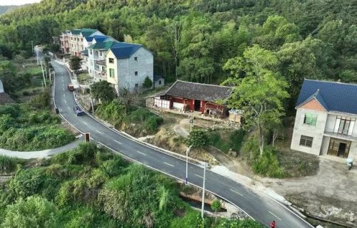 沿著盤山公路上行,汽車開進了沽溪村。群山環(huán)抱著整齊的新樓房,鮮花點綴在整潔的村道兩旁,村民在院子里晾曬收獲的稻谷。